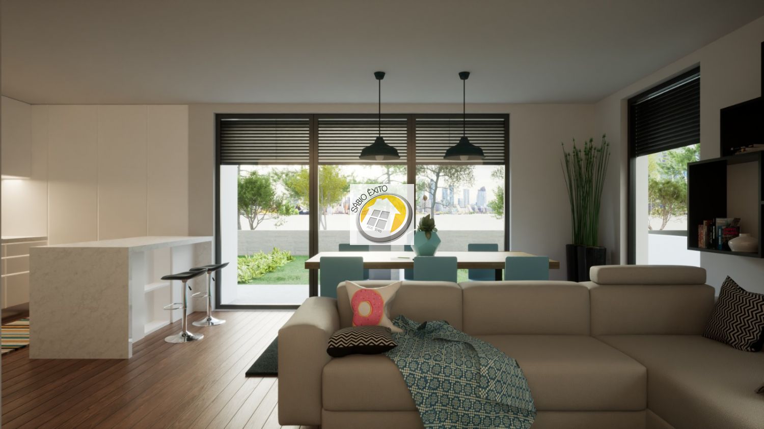 - Sala e cozinha em sistema de open space;